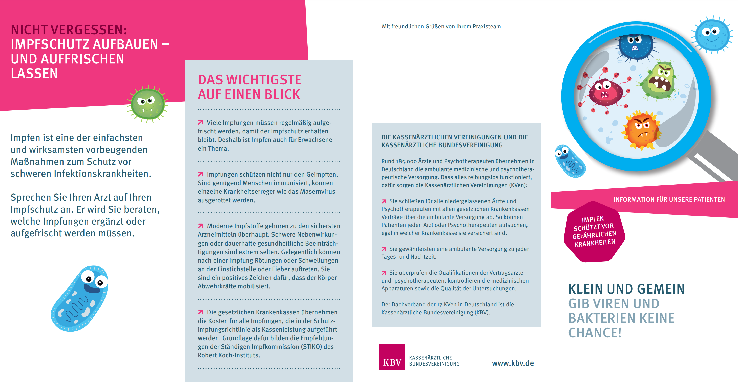 Medizinisch: Wir empfehlen die Teilnahme an Präventionsprogrammen (Vorsorge-und Gesundheitsuntersuchung) und führen diese auch durch. Ergänzend ist zur Vermeidung von Infektionskrankheiten die Aktualisierung von Impfungen schnell, einfach und wirksam.